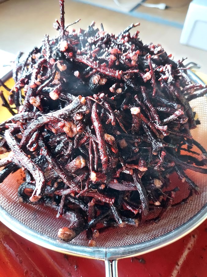 栗山文次郎さんが染めた深い紫色の紫根染に少しでも近づき