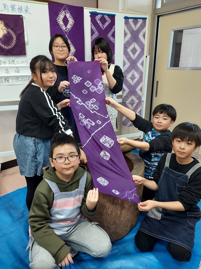 柴平小学校4年生のふるさと学習「紫根染調査隊」(☆。☆)